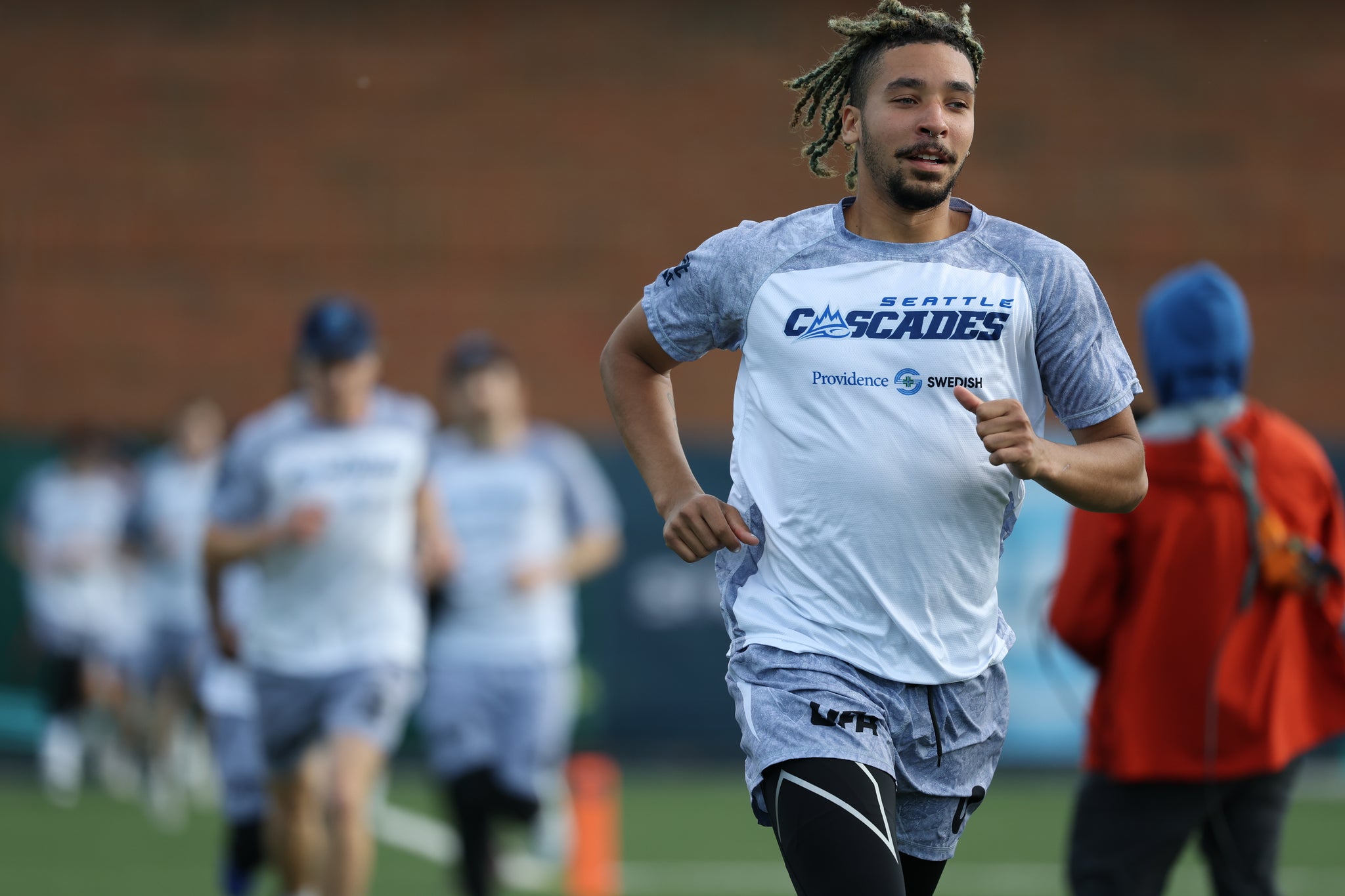 #0 Zeppelin Raunig replica jersey. Deck yourself out in the true blue of the Seattle Cascades Official AWAY Jersey. Fully sublimated N-Knit short sleeve jersey, produced by BE Ultimate. Sizing guide here.