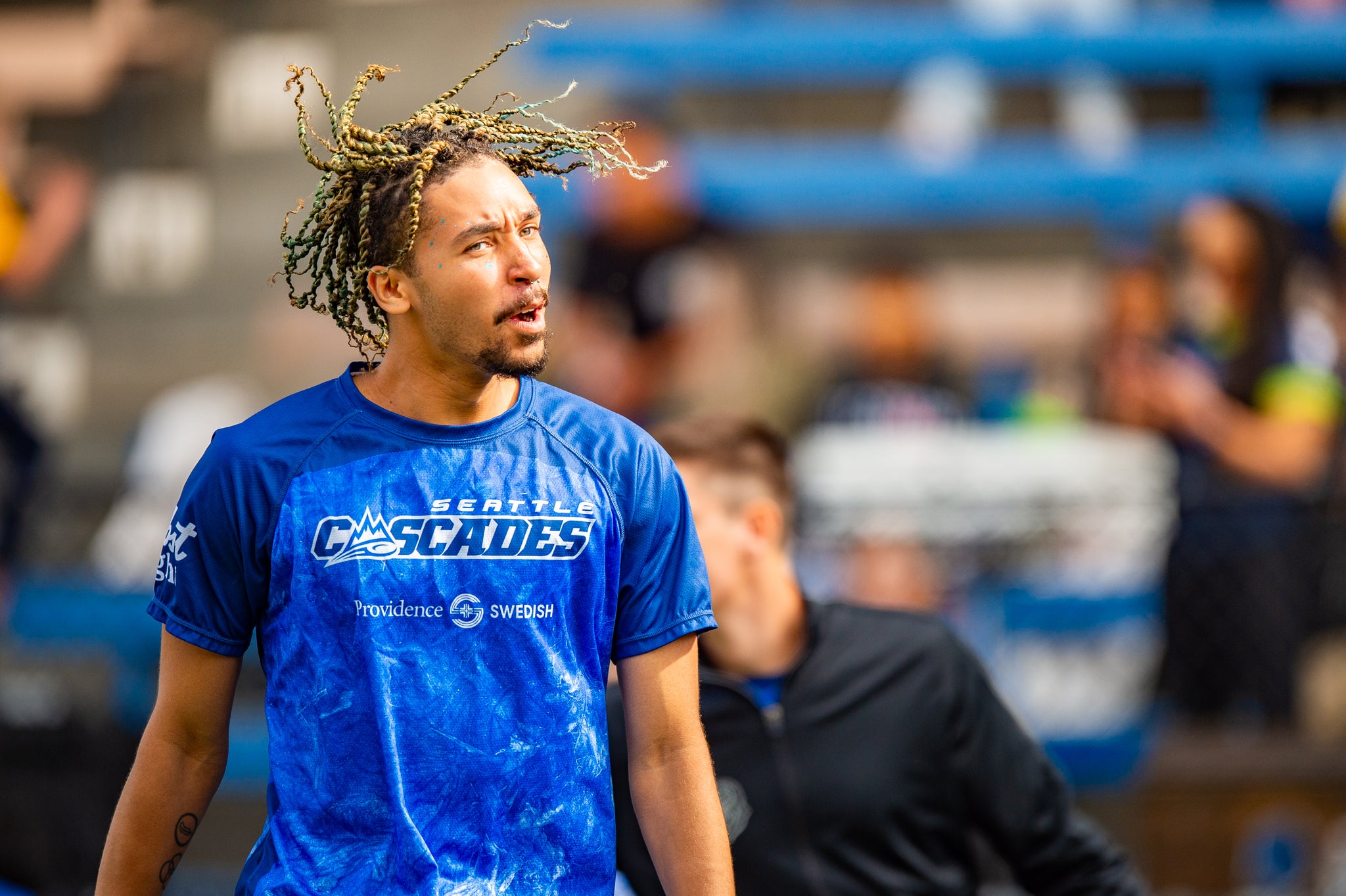 #0 Zeppelin Raunig replica jersey. Deck yourself out in the true blue of the Seattle Cascades Official HOME Jersey. Fully sublimated N-Knit short sleeve jersey, produced by BE Ultimate. Sizing guide here.